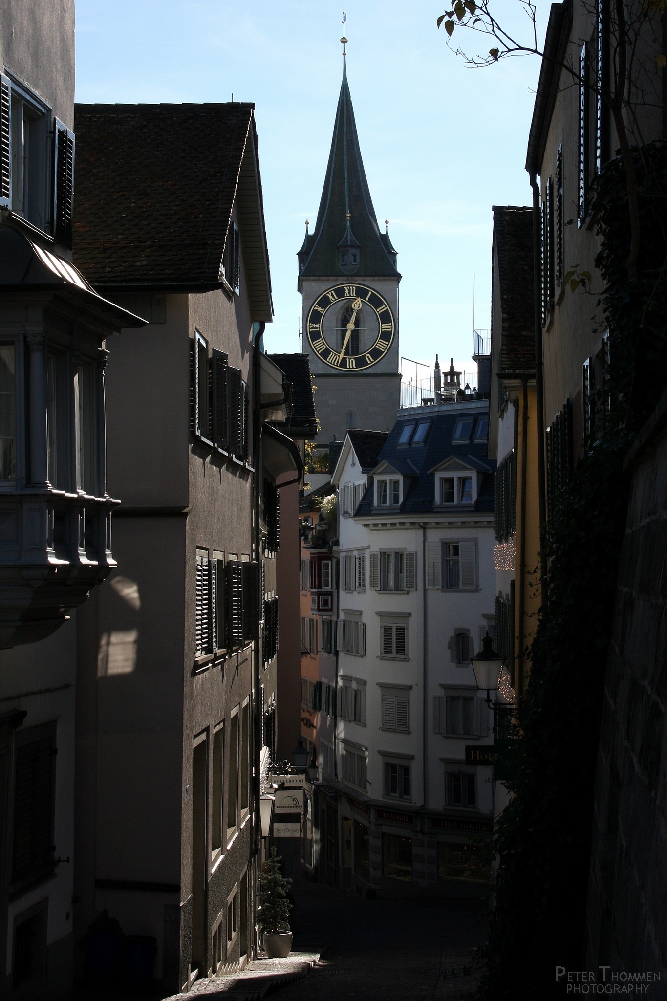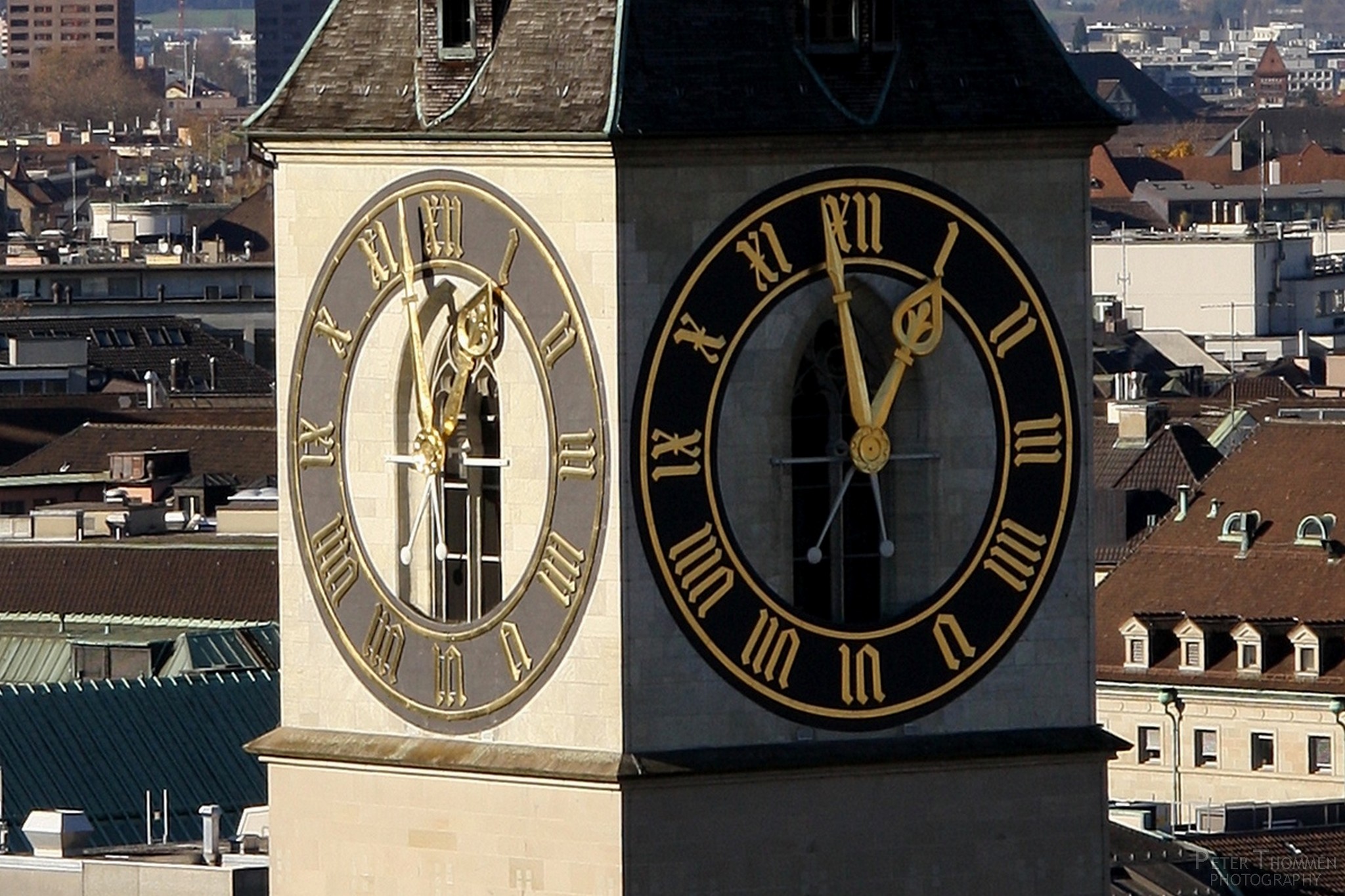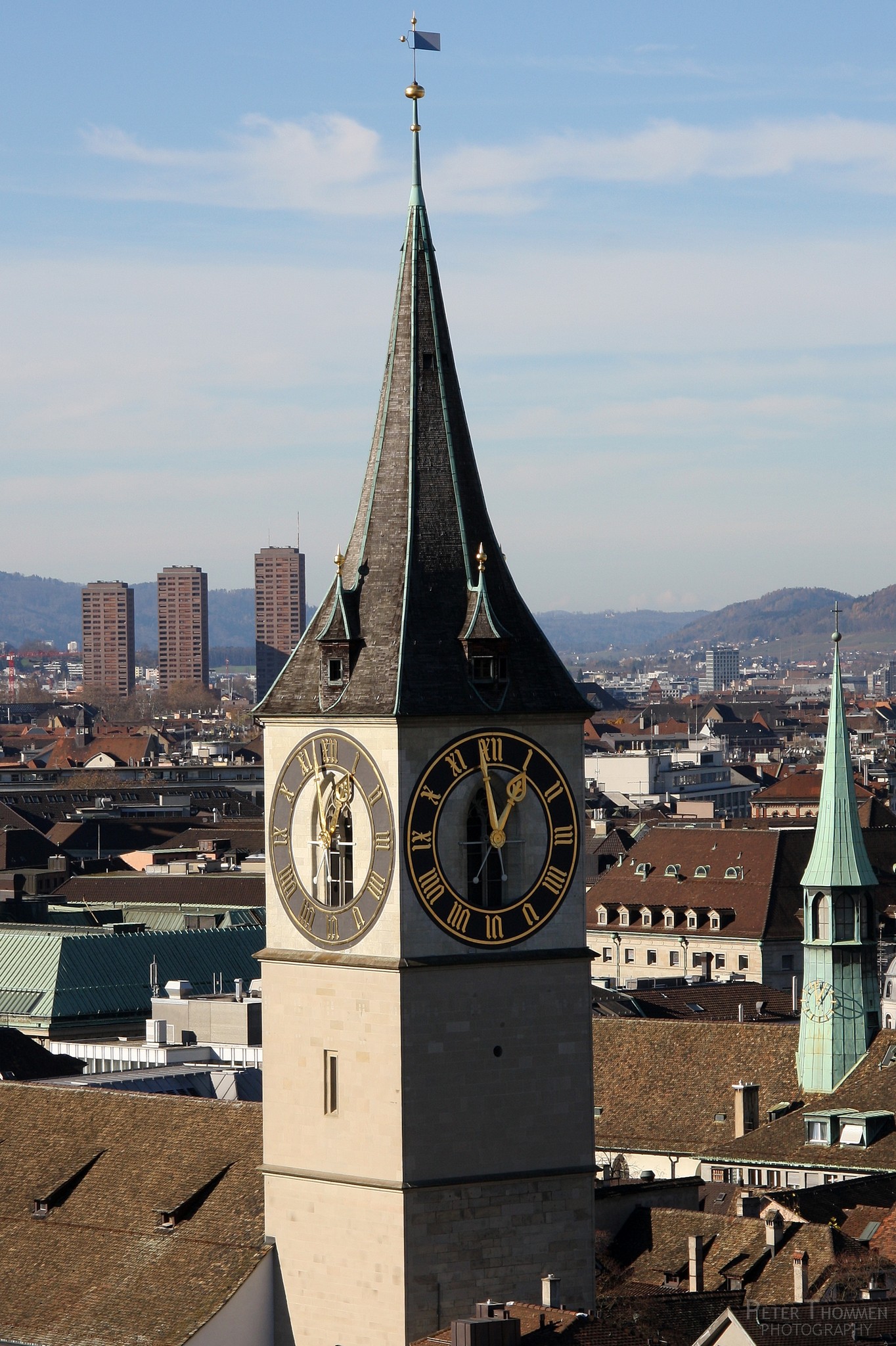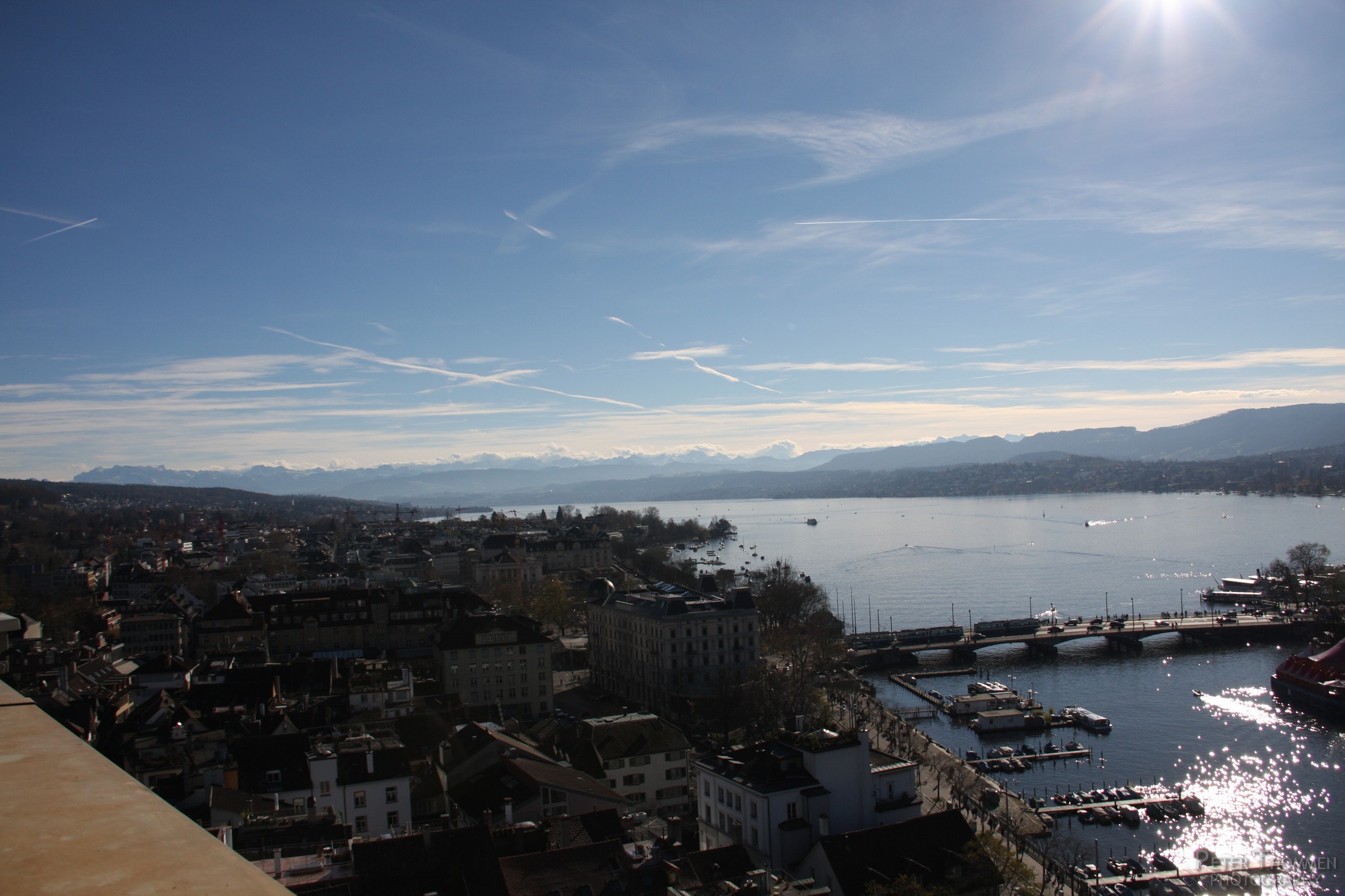 Von der anderen Seite der Limmat hat man einen schönen Ausblick auf die Kirche Grossmünster, mt seinen 2 Türmen.